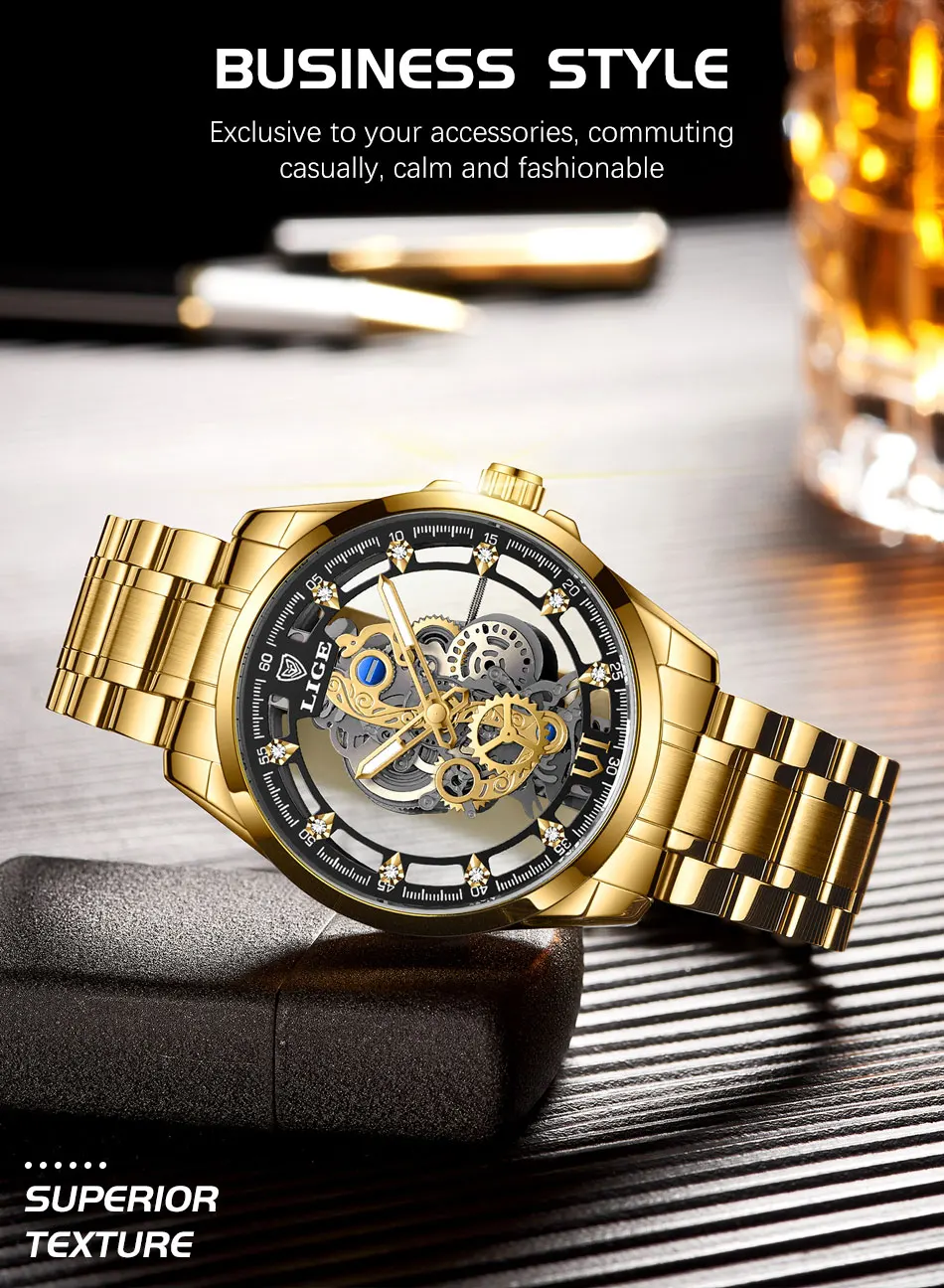 • Luxury Design :The LIGE Men's Watch features a luxurious skeleton quartz design, showcasing the finest craftsmanship and top brand quality.