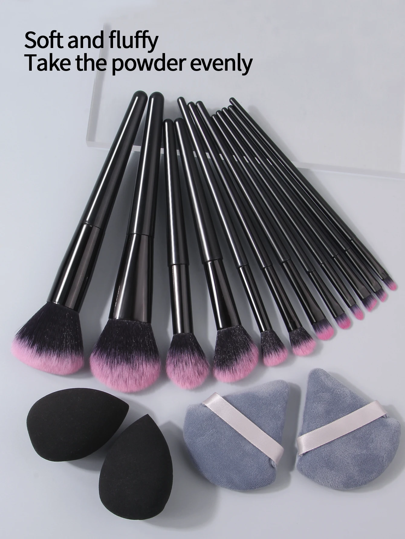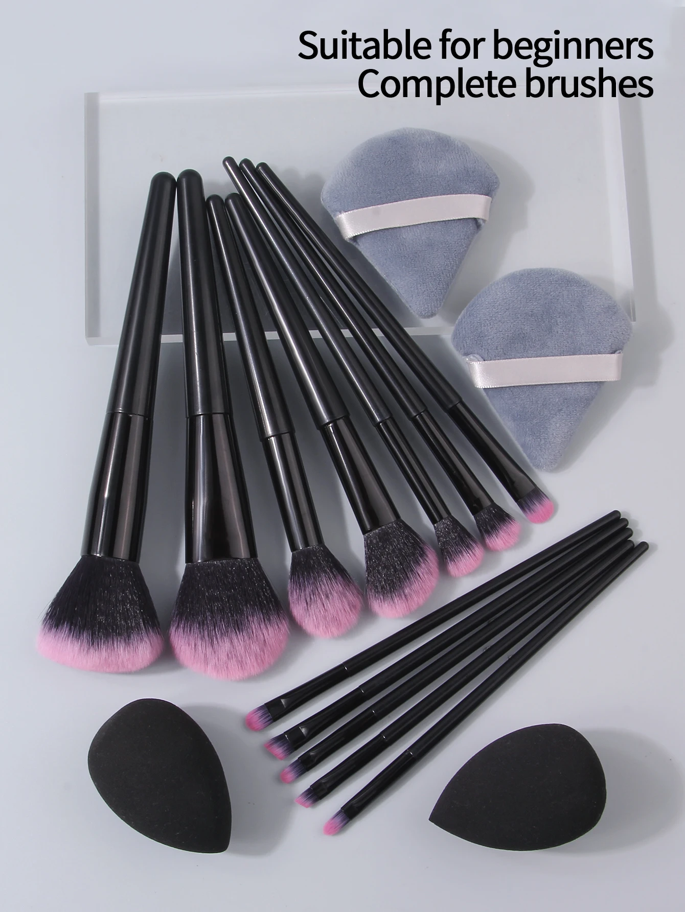 Professional makeup tool set: 12 makeup brushes, 2 water-drop makeup sponge eggs, and 2 triangular powder puffs