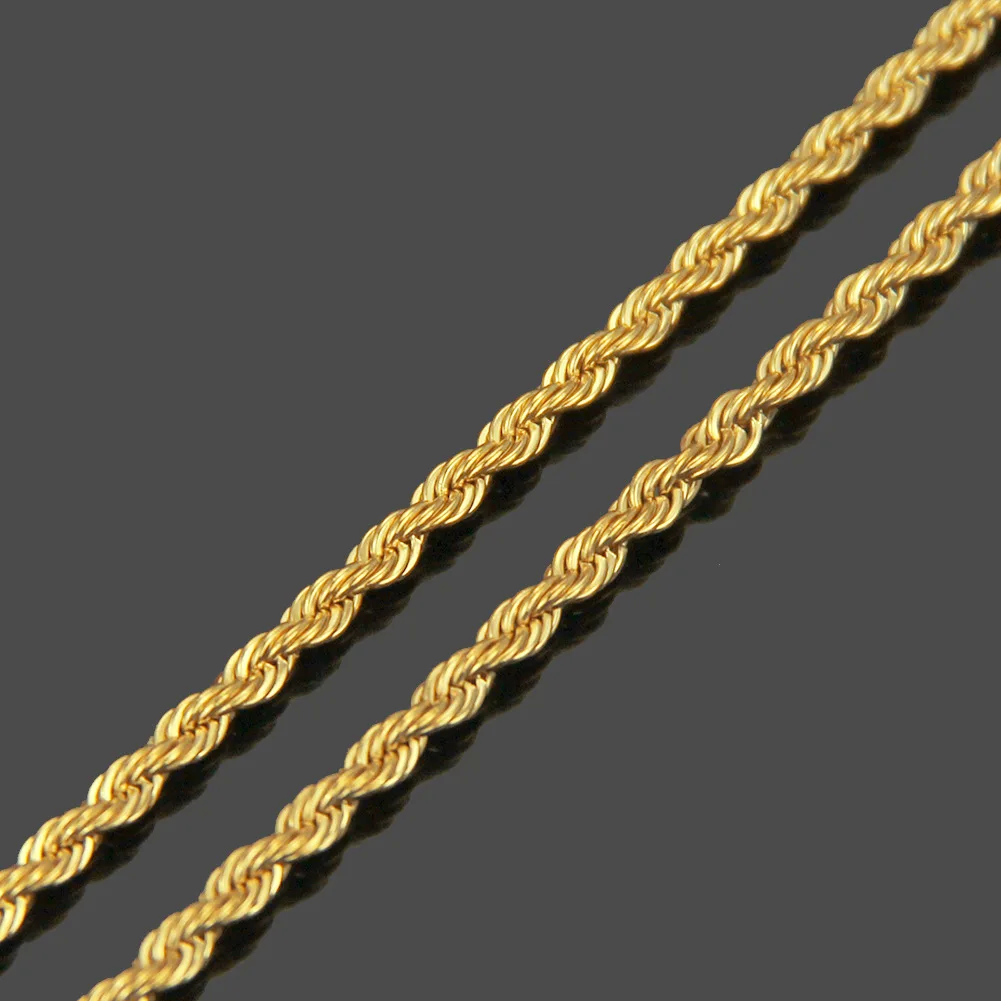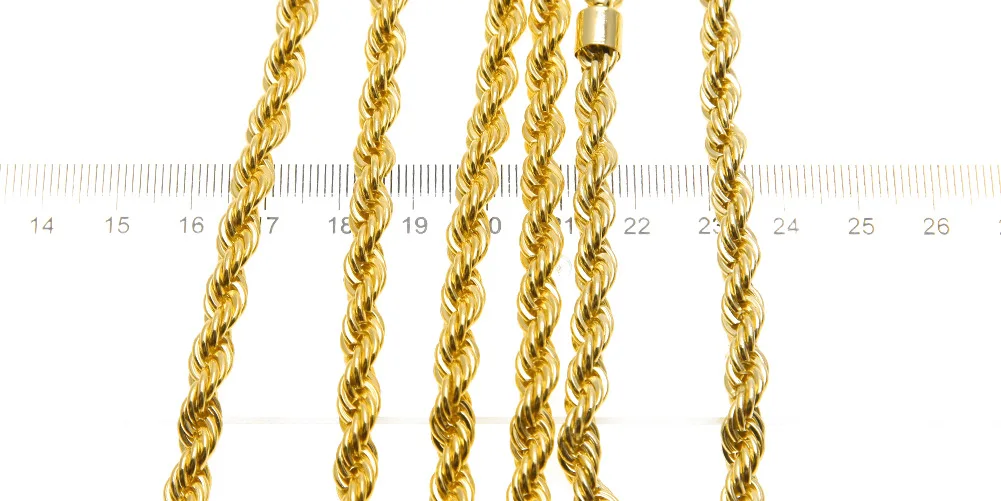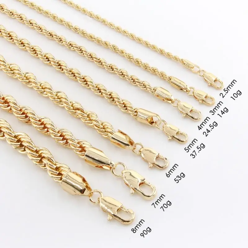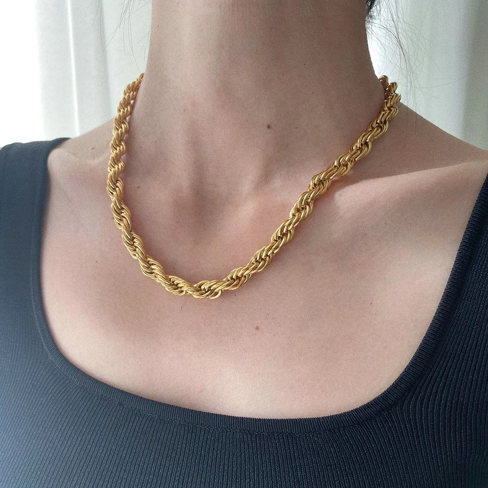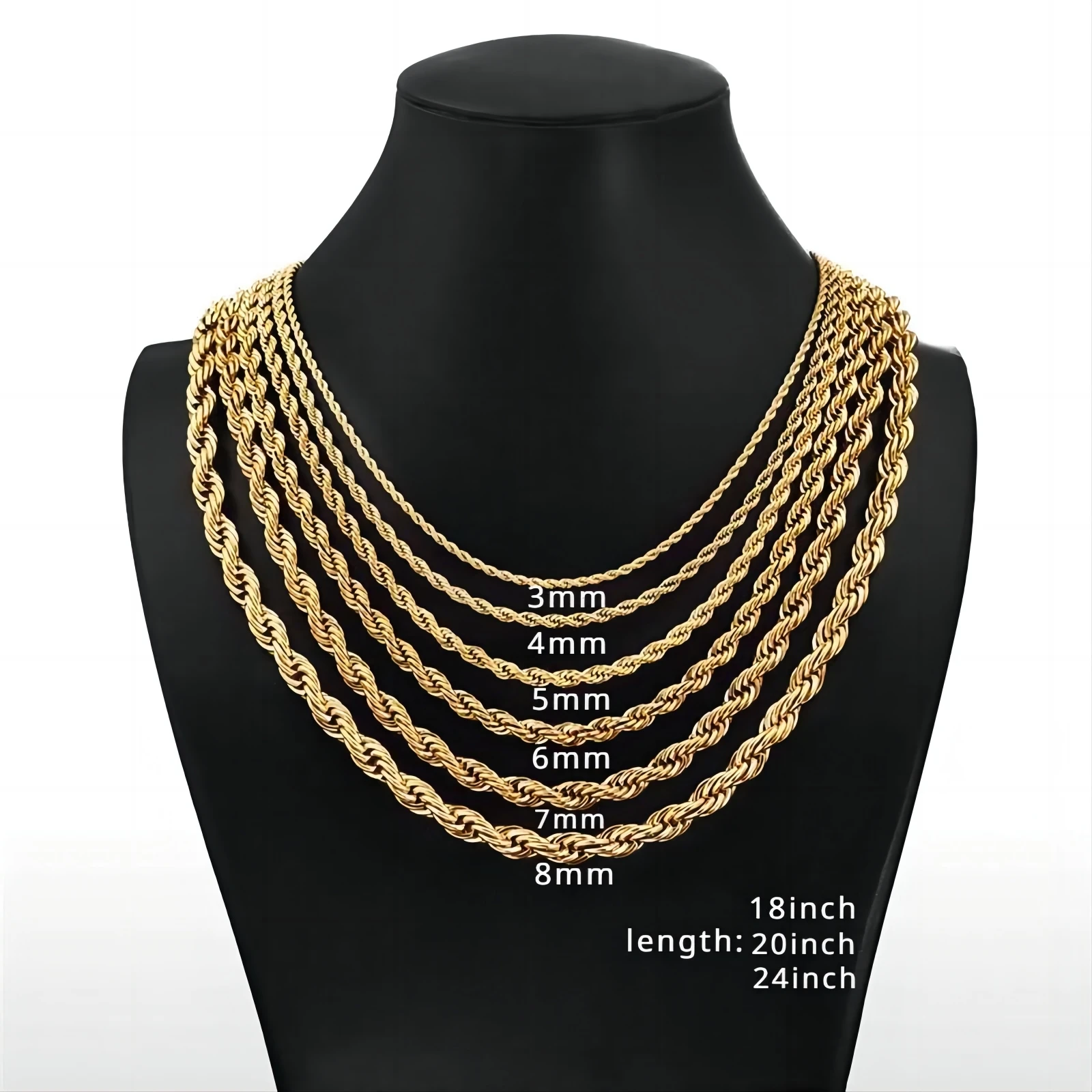 Luck Fashion 14K Gold Plated Rope Chain Necklace – Non-Tarnish, Waterproof, Thick Twist Design, 2.5mm–8mm, Gift for Men & Women.